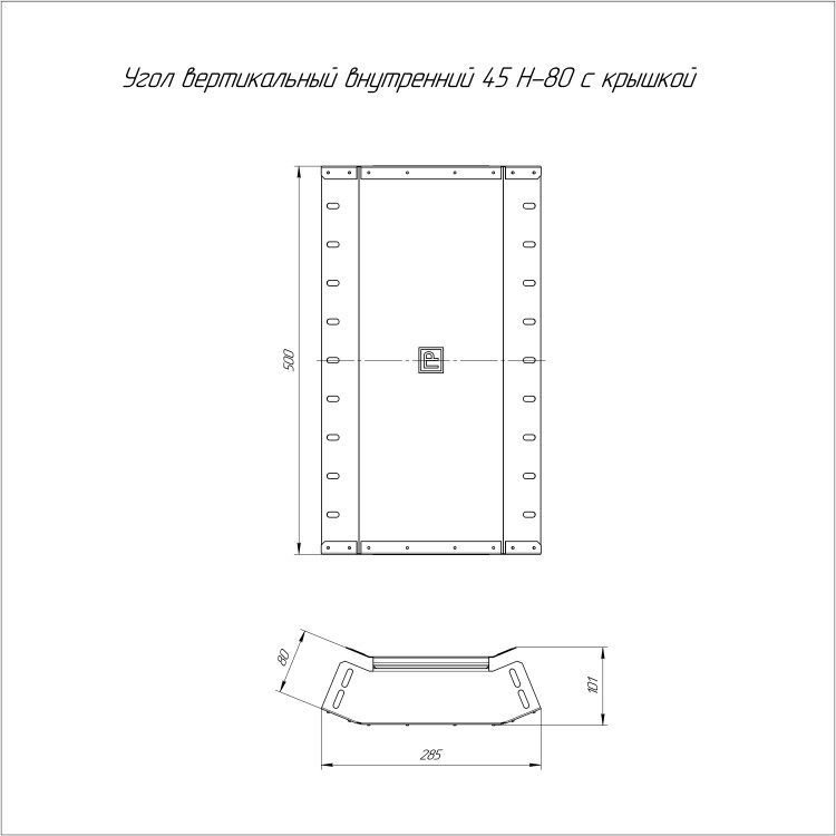 Угол вертикальный внутренний 45° с крышкой для лотков Стандарт 500?80 Промрукав