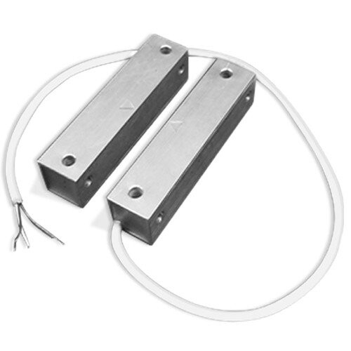 Магнитоконтактный для металлических поверхностей; контакты переключаются при тревоге, 24 мм (контакты замкнуты), 70 мм (контакты разомкнуты); U-коммут.72 В, I-коммут.500 мА, P-коммут.10 Вт; IP68, t-раб.-50…+50°С, 130х20х20 мм (магнит и геркон). Кабель КСПВГ 3х0,2 1000 мм. Алюминиевый корпус. 0.22 кг.