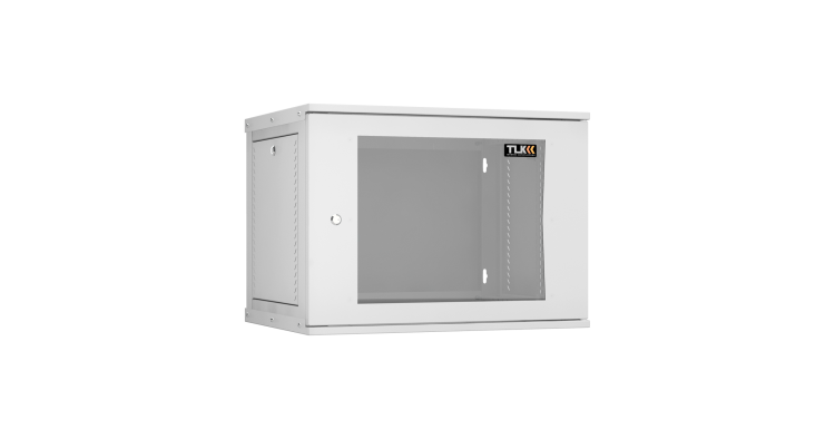 Настенный разборный шкаф TLK 19", 9U, стеклянная дверь, Ш600хВ436хГ450мм, 1 пара монтажных направляющих, серый
