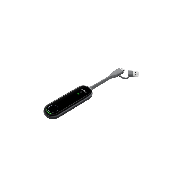 Адаптер беспроводного подключения оборудования пользователя к терминалам Yealink для трансляции контента и совместной работы с ним, управления и использования видеотерминалов MeetingBar и MeetingBoard в режиме беспроводного BYOD. Дает возможность легко и надежно подключить источники контента, таких как ноутбук, смартфоны, планшеты или сенсорный экран к терминалу ВКС, поддерживает передачу видео, звука, управление и видеозапись конференции. Быстрая установка, не требует облачного сервиса или установки приложений и драйверов на оборудования пользователя. Дает возможность подключить сенсорные экраны, реализовать интерактивные функции совместной работы: вирутальная «Белая доска», аннотация контента и обратное управление оборудованием пользователя, например, выбор, запуск, перенос и перелистывание слайдов и т.д.