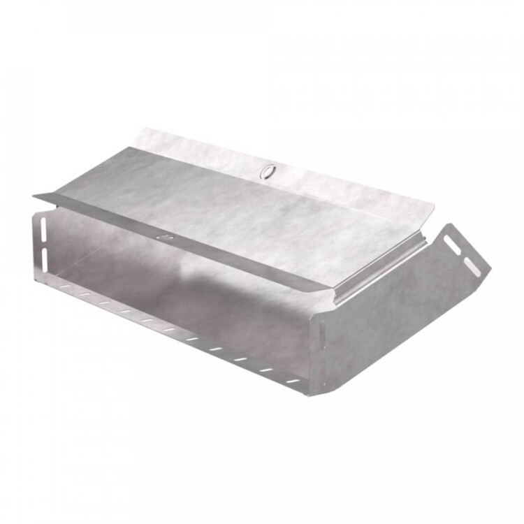 Угол изготовлен из оцинкованной стали с плотным цинковым покрытием по методу Сендзимира, что гарантирует долговечность и защиту от коррозии в условиях промышленного и коммерческого монтажа. Встроенная крышка облегчает доступ к кабелям и защищает их от внешних воздействий, что особенно важно при прокладке трасс в сложных условиях.