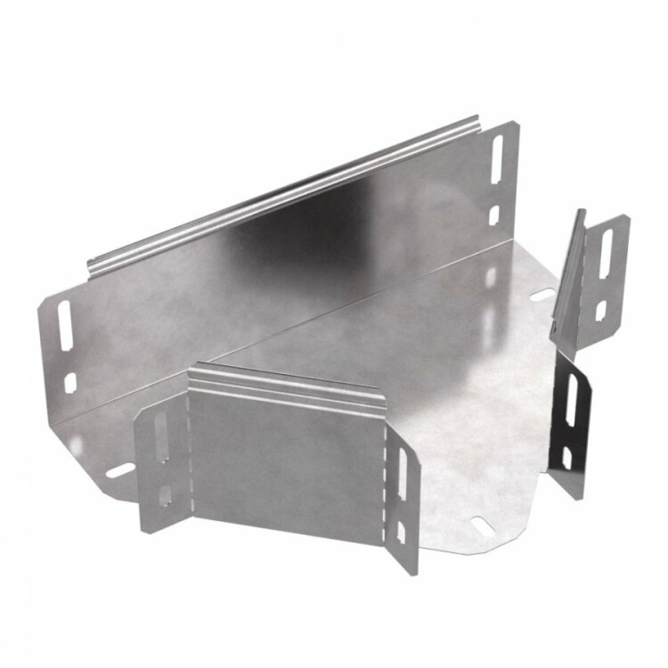 Ответвитель Т-образный PR16.8425 предназначен для горизонтального разветвления кабельных трасс в перфорированных и глухих лотках. Изделие изготовлено из стали с цинковым покрытием по методу Сендзимира, что обеспечивает надежную защиту от коррозии и долговечность при эксплуатации в помещениях и под навесом при температурах от -80 до +150°С. Размер 100х100 мм подходит для прокладки кабелей средней мощности и позволяет удобно организовать ответвления в кабельной системе.