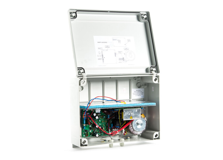 2 выхода переменного напряжения 220В и 24В суммарно 150ВА. Корпус под 2 термостата АКБ 12Ач, дистанционное сообщение о переходе на резерв и о разряде АКБ, защита АКБ, защита нагрузки. Уличное исполнение IP56, рабочий температурный диапазон от - 40°С до + 50°С