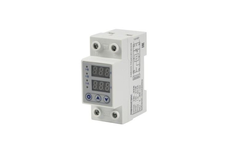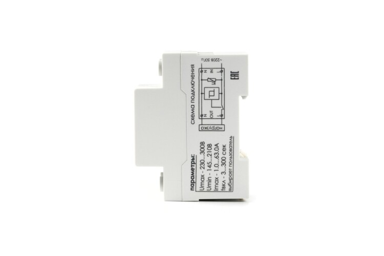 220 В, 63 А. Реле напряжения для защиты от длительного аварийного повышения напряжения в сети.