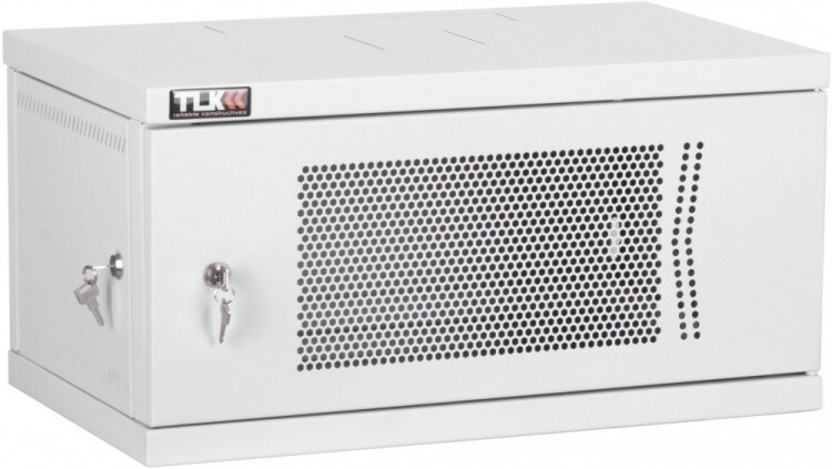 Настенный разборный шкаф TLK 19", 6U, перфорированная дверь, Ш600хВ303хГ450мм, 1 пара монтажных направляющих, серый