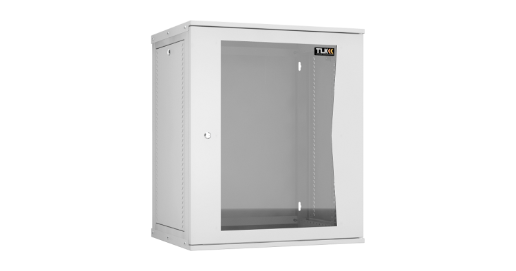 Настенный разборный шкаф TLK 19", 15U, стеклянная дверь, Ш600хВ703хГ450мм, 1 пара монтажных направляющих, серый