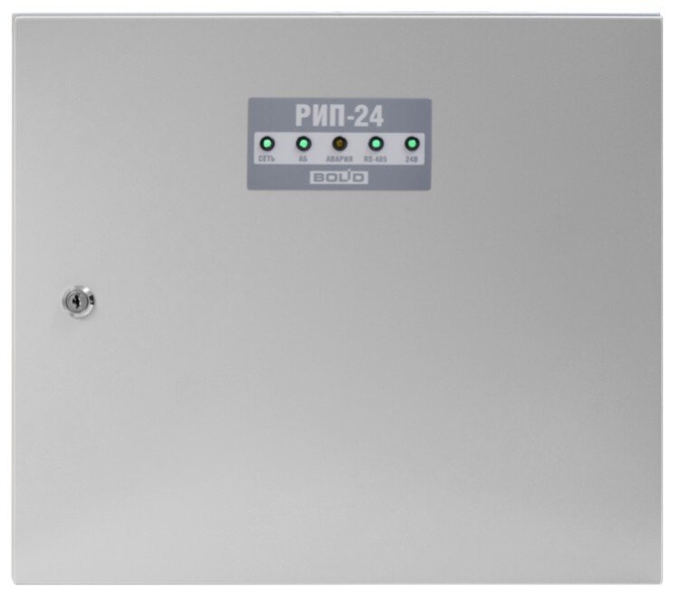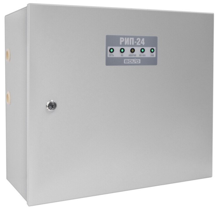 Резервированный источник питания, 24 В, 4 А (10 мин-5 А), передача данных и управление по интерфейсу RS-485, световая и звуковая индикация режимов, возможность установки аккумуляторов 2х40 Ач, защита от переразряда. Металлический корпус. Соответствие "Техрегламенту пожарной безопасности"