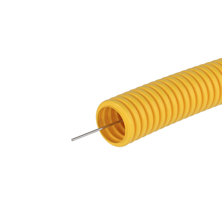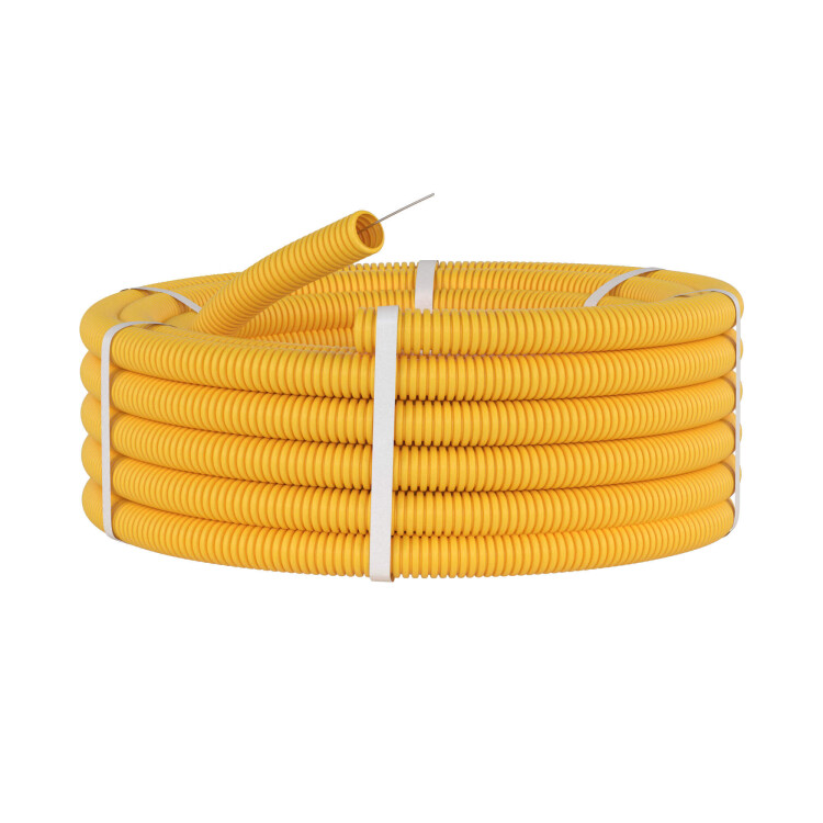 Гибкая гофрированная труба из ПВХ надежно защищает кабель от механических воздействий. Используется для прокладки электрического, компьютерного телефонного кабелей. Труба этого типа прокладывается в стенных штробах, в пустотах фальш-потолков и фальш-стен, в стяжке полов или под фальш-полами. Проволочная протяжка облегчает прокладку кабеля в трубе.