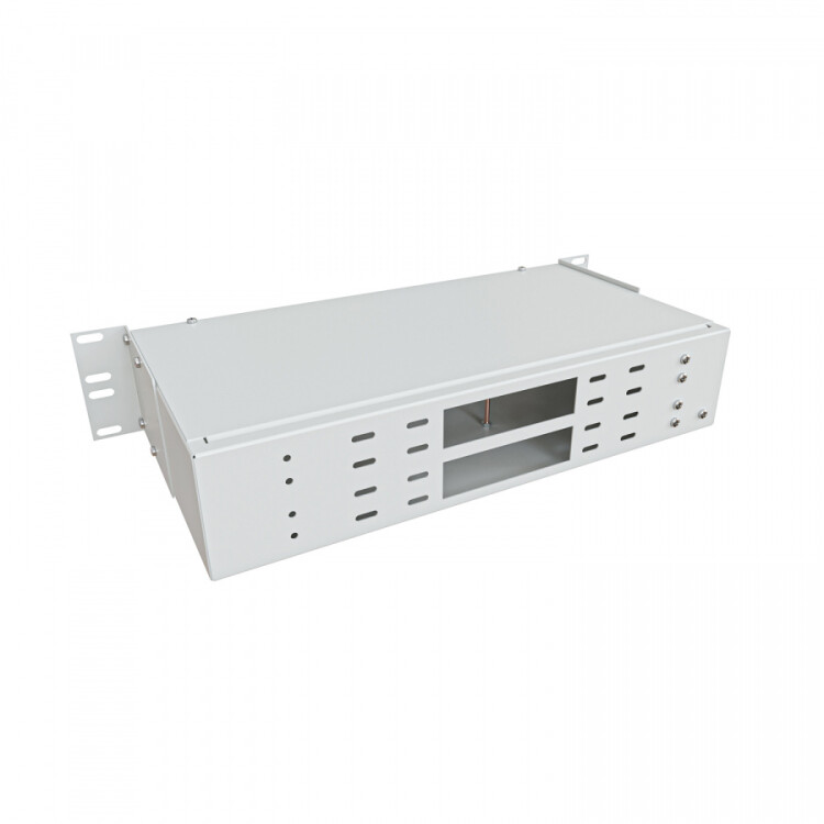Кросс оптический распределительный стоечный NTSS предназначен для оконцовки оптического кабеля и коммутации с внешними устройствами через оптические адаптеры. Кросс оптический 19" предназначен для установки в шкафы или стойки и имеет специальные кронштейны для крепления кросса в 19-ти дюймовые направляющие. Кронштейны могут быть установлены на двух разных уровнях, для возможности установки кросса как заподлицо с направляющими шкафа так и немного утопленным. Лицевая сторона оптического кросса NTSS-RFOB изготавливается в двух видах конструктива - с отверстиями под адаптерные планки и со сплошной панелью. Тыльная сторона кросса имеет отверстия для ввода и крепления кабеля, для крепления центрального силового элемента. Для монтажа сплайс кассет в кроссе есть несъемные шпильки с гайками барашками. Кроссы выпускаются размерами от 1 до 4U и могут быть серого или черного цвета. Под заказ можно изготовить кроссы любого цвета.