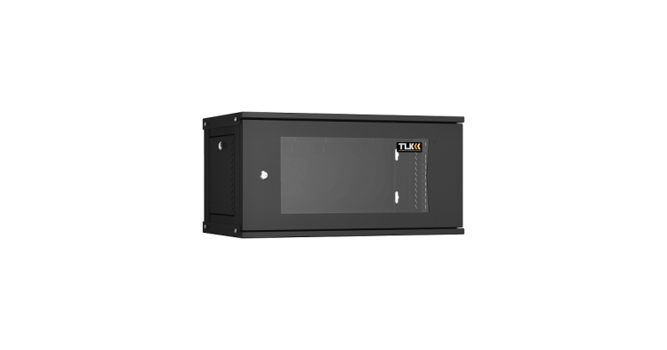 Настенный разборный шкаф TLK 19", 6U, стеклянная дверь, Ш600хВ303хГ450мм, 1 пара монтажных направляющих, черный
