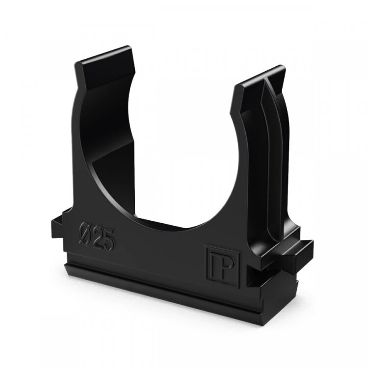 PR13.0211 Крепёж-клипса для труб Полистирол черная д25 в малой упаковке (10шт/500шт уп/кор) Промрукав