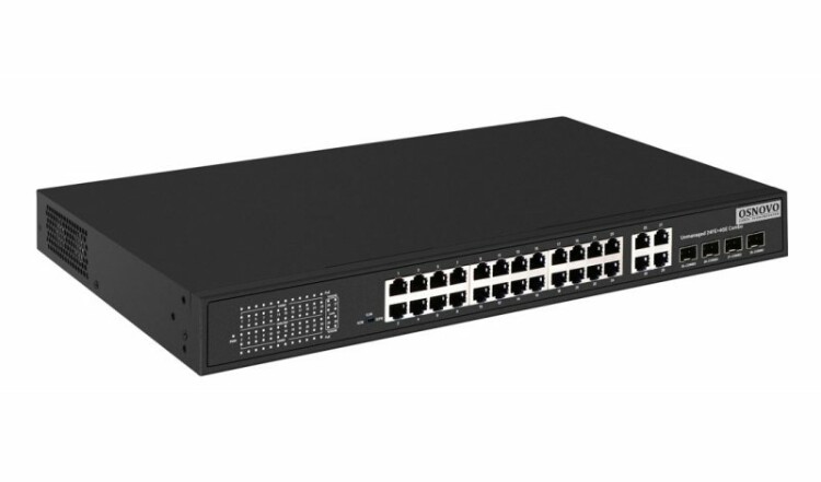 SW-62444(400W) PoE коммутатор Fast Ethernet на 24 x RJ45 портов + 4 x GE Combo uplink порта. Порты: 2 x FE (10/100Base-T) с PoE (до 60W, A+B) + 22 x FE (10/100Base-T) с PoE (до 30W), 4 x GE Combo Uplink (RJ45 + SFP). Соответствует стандартам PoE IEEE 802.3af/at/bt. Автоматическое определение PoE устройств. Суммарная мощность PoE до 385W. Поддержка режима CCTV: Увеличение расстояния передачи данных и питания до 250м, изоляция портов (VLAN). Встроенная грозозащита 3kV на порт. Питание: AC100-240V (400W). Встроенный БП. Монтаж в 19 - дюймовую стойку, крепление в комплекте. Размеры (ШxВxГ) 440 x 45 x 290мм. Рабочая температура: -10...+55 гр. С.