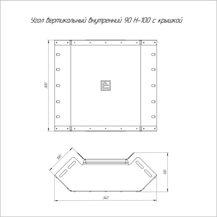Угол вертикальный внутренний 90° с крышкой для лотков Промрукав Стандарт 300х100