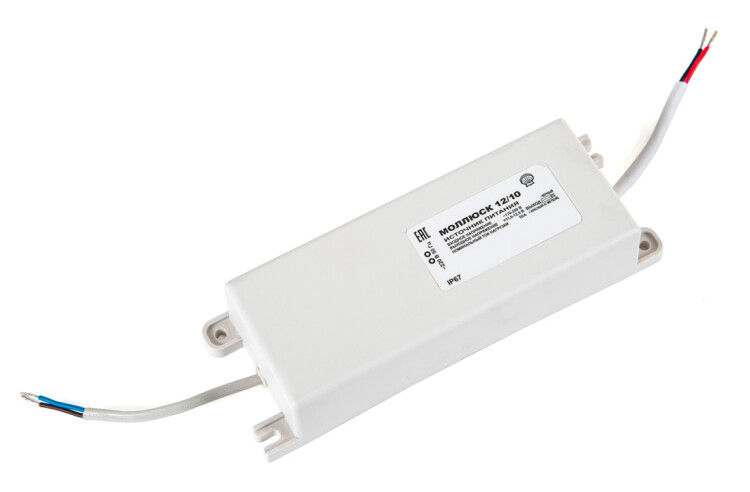 12В, 10А, габариты 205х70х40 мм, защита выхода от КЗ и перегрузки, прочность изоляции 3 кВ, проушины для крепления, корпус IP67