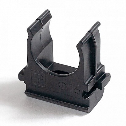 Предназначена для крепления гладких труб ПВХ или гофрированных труб одного диаметра к поверхности стен, потолков, полов или перегородок. Для монтажа предусмотрено технологическое отверстие под дюбель или саморез. Для удобства блочного монтажа состыковываются друг с другом с помощью специальных фиксаторов типа «ласточкин хвост».