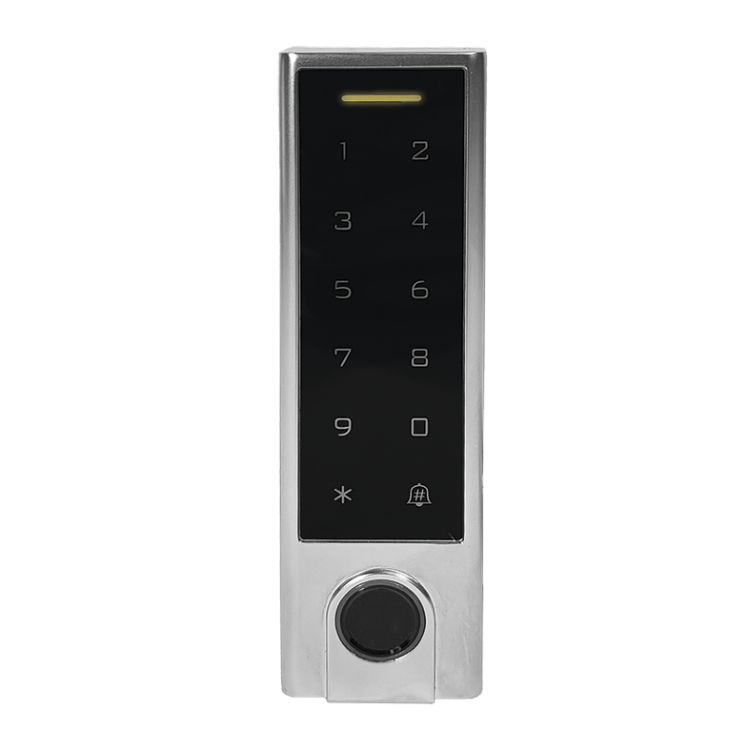 Кодонаборная панель со считывателем отпечатков пальцев, считывателем карт Em-Marine и автономным контроллером на 1000 пользователей (99 отпечатков, 888 карт/кодов обычных пользователей). Возможность администрирования памяти и дистанционного открывания с помощью приложения Smart Life. Возможна работа в режиме считывателя и кодовой панели с передачей информации через Wiegand. Питание 12-18 В пост.тока / 150 мА. Корпус из цинкового сплава, класс защиты IP66. Температурный диапазон: -30...+60°С.
