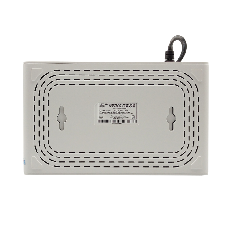 Источник питания ST-S811POE (P/2M/96W/А), Switch POE 8-ми портовый для обеспечения проводных сетей напряжением 48В, PoE порты: 8 х (10/100 Мбит/с), UpLink порты: 2 х (10/100 Мбит/с), Max.пропускная сп-ть: 100 Мбит/канал, Р(ном) каждый порт (Вт): 12 Вт, Р(макс) каждый порт (Вт): 30 Вт, Тип РоЕ: А, защита от КЗ, Extend 250м., VLAN