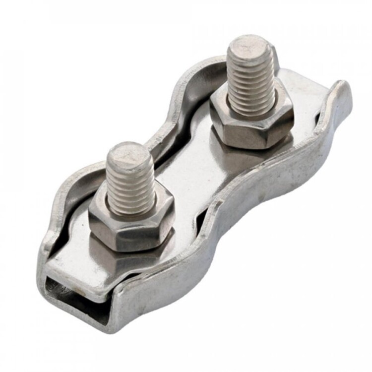 Зажим Duplex для троса 4 мм применяется для удлинения, соединения стальных канатов и тросов, создания петель, крепления к тросам крюков и блоков. Используется при проведении такелажных работ.