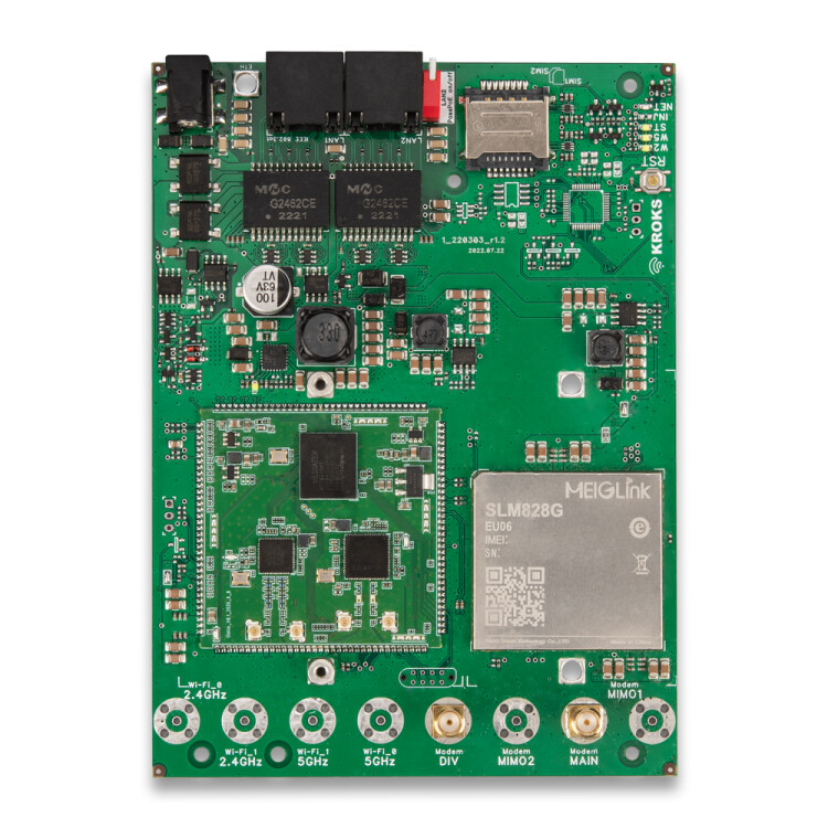 Rt-Brd m6-G гигабитный роутер с модемом LTE cat.6 для установки в гермобокс Kroks LTE Cat.6 до 300 Мбит/c входящая до 50 Мбит/с исходящая Поддержка двух SIM карт WiFi 2,4 + 5 ГГц, PoE 24-57V Поставка OEM (только плата)