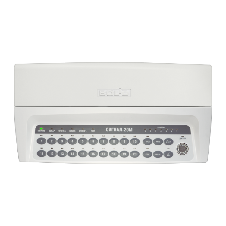 Контроль 20 шлейфов, возможность программирования параметров каждого шлейфа для работы в режиме охранной или пожарной сигнализации, фиксация сработок в каждом шлейфе одного и двух пожарных извещателей, выходы управления пожаротушением, 64 пароля пользователя, управление от встроенных переключателей или по интерфейсу RS-485 от пульта «С2000» или ПЭВМ