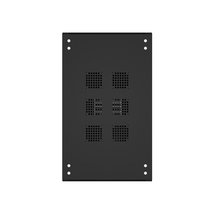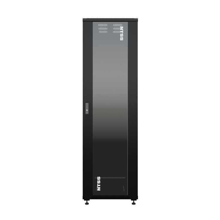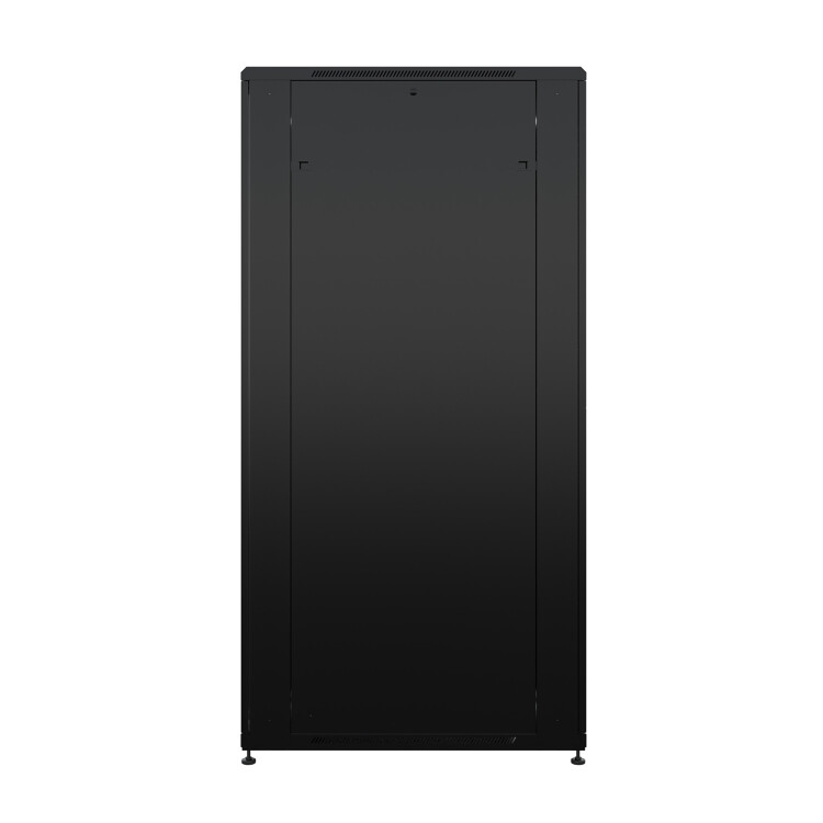 Передняя дверь со стеклом и задняя глухая металлическая ограничивает наполнение шкафа оборудованием с малым тепловыделением до нескольких киловатт.
