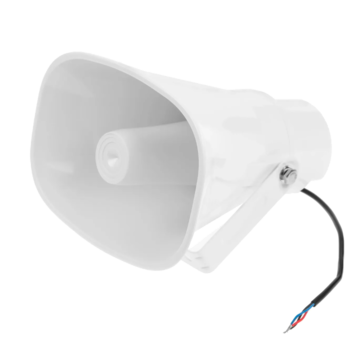 Громкоговоритель рупорного типа номинальной мощности 10/15 Вт. Номинальная мощность при 100 В: 10/15 Ватт Диапазон частот: 250 - 8 000 Гц Чувствительность: 110 дБ Габариты: 165?220?240 мм Материал: пластик Цвет: белый