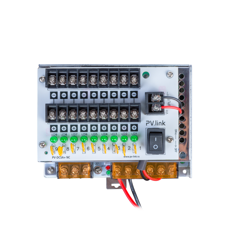 PV-DC5A+ NC PV-link v.2089 - блок питания стабилизированный, DC 12 В, 5 А, 9 выходов, с креплением н