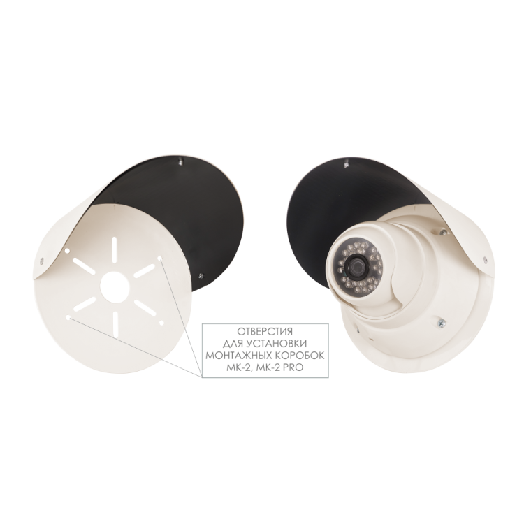ЗК-4 Защитный козырек для совместной установки монтажной коробки (МК-2) и купольных видеокамер диаметром не более 90 мм. Материал оцинкованная сталь. Предназначен для защиты от воздействия прямых солнечных лучей, попадания атмосферных осадков в виде дождя, снега, града и кусков льда. Крепится на стену. Габариты, мм: ?160х140. Масса, кг: 0,37. Диапозон рабочих температур: -50…+60.