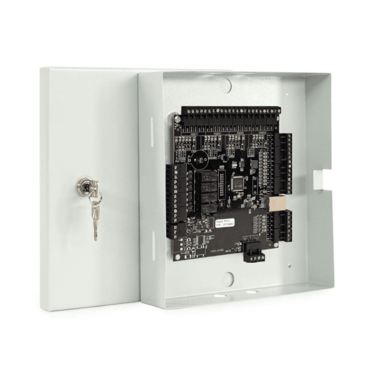Сетевой контроллер. До 4 точек досупа (двери, турникеты, ворота или шлагбаумы). 4 считывателя Wiegand или TM. Память 360к ключей, 1.6млн событий. Интерфейс связи: Ethernet. Металлический бокс 240*26 *57 мм