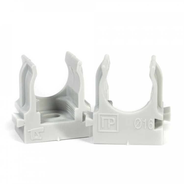 PR13.0452 Крепеж-клипса для труб для монтажного пистолета серая в гофроящике d16 мм (1400шт/кор) Промрукав