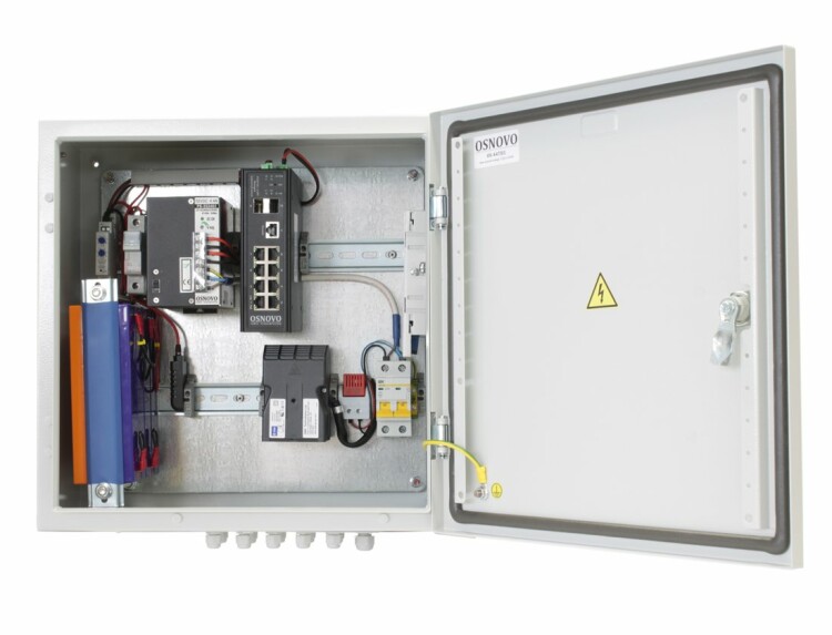 OS-44TB1(SW-80802/ILS(port 90W)) Уличный управляемый (L2+) коммутатор на 10 портов с термостабилизацией, резервным питанием и функцией мониторинга температуры/влажности/напряжения на базе уличной станции OS-44TB1. Порты: 1 x GE (10/100/1000Base-T) с PoE (до 90W, IEEE 802.3bt) + 7 x GE (10/100/1000Base-T) с PoE (до 30W) + 2 x GE SFP (1000Base-X). Суммарный бюджет PoE до 240W. Металлический шкаф (ШxВxГ): 400х400х210мм, питание AC195-265V. АКБ 48В(2,2Ач)), оптический кросс, исполнение IP66. Рабочая температура (температура окружающей среды): -60…+50°С, температура внутри станции -10…+55°С.