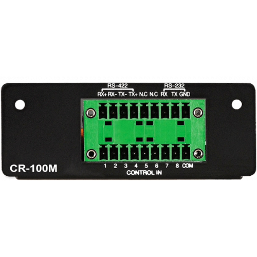 Интерфейсный модуль опционально может быть установлен в блок оптоэлектронного преобразования FRA-108S для приема по волоконно-оптической линии сигналов управления в виде "сухих контактов" или данных по интерфейсу RS-232, RS-422.