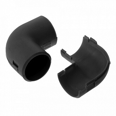 Предназначен для соединения гофрированных труб или гладких труб из пластика под углом 90 °С, что позволяет придать более эстетичный внешний вид местам соединения. Благодаря разъёмному корпусу, имеет возможность установки на уже смонтированную трассу.