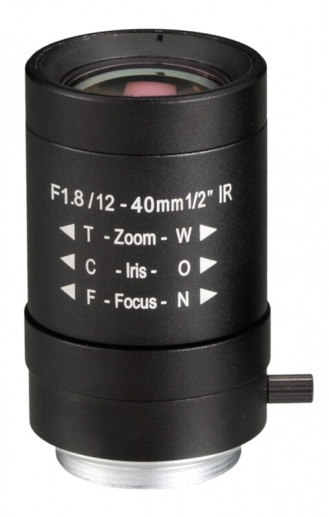 3 мегапиксельный, 1/2”, 12 - 40 мм, от 34° до 12° угол обзора, F1.8, СS крепление, ручная диафрагма, ИК-коррекция, 33х33х51.5мм 0.092 кг