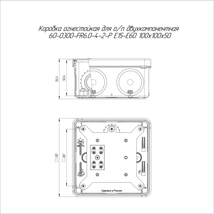 60-0300-9003-FR6.0-4-2-Р Коробка огнестойкая разветвительная двухкомпонентная Е15-Е60 RAL9003 100х100х50 (14 шт/уп) Промрукав