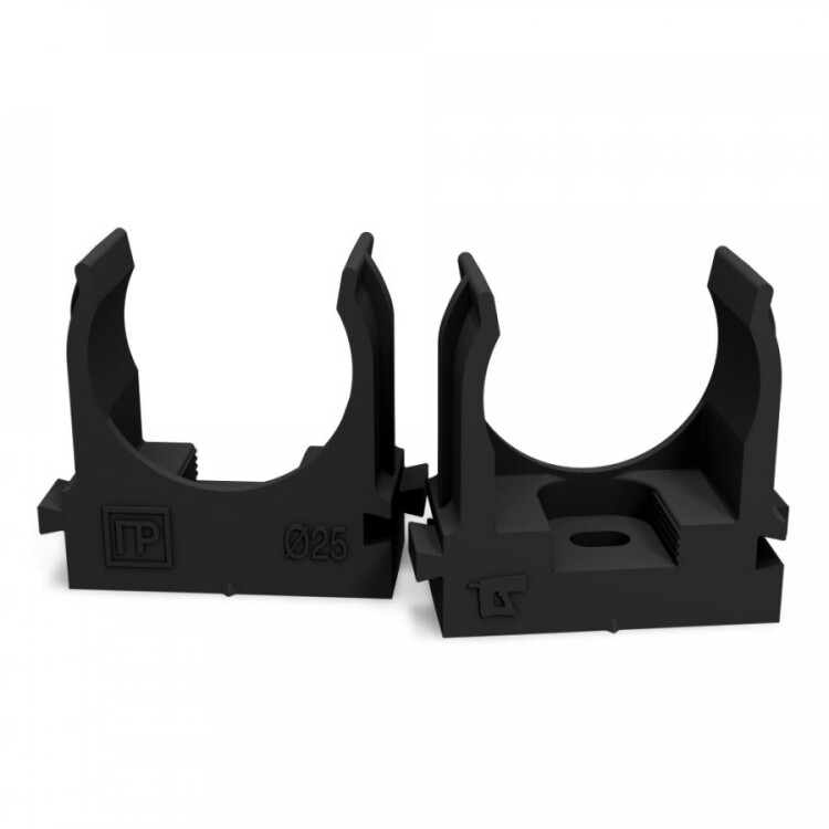 PR13.0457 Крепеж-клипса для труб для монтажного пистолета черная в гофроящике d25 мм (900шт/кор) Промрукав