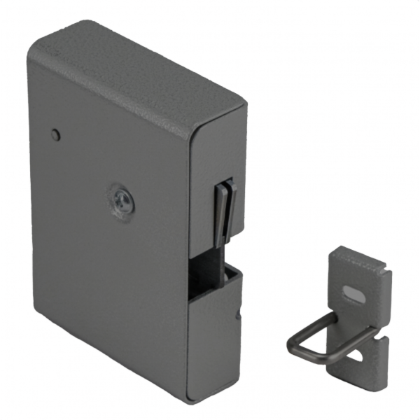 Электромеханический замок с толкателем и датчиком положения двери. Усилие удержания ригеля 250 кг. Нормально закрытый, напряжение питания DC 12 В/0,4 А, -30...+50 °С, цвет - графит