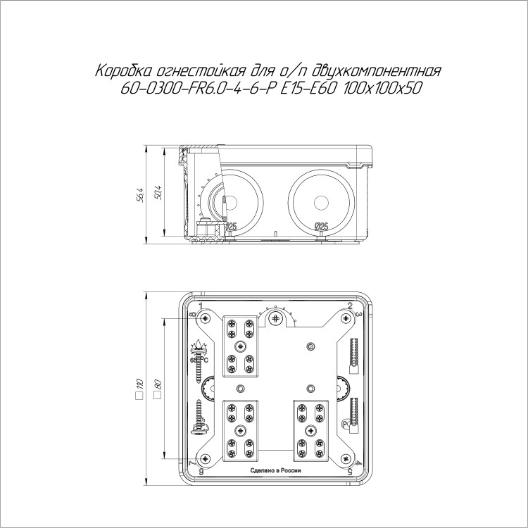 60-0300-9003-FR6.0-4-6-Р Коробка огнестойкая разветвительная двухкомпонентная Е15-Е60 RAL9003 100х100х50 (14 шт/уп) Промрукав