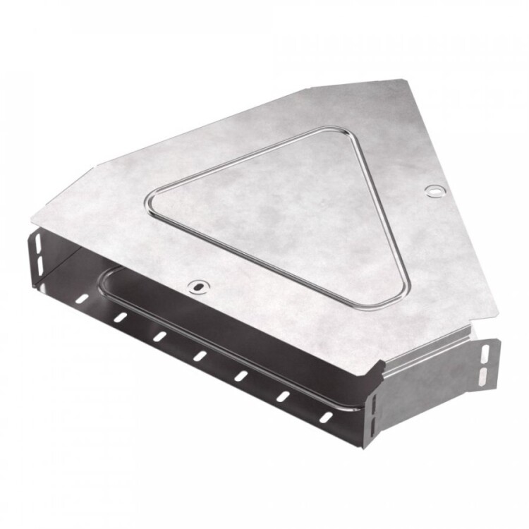 Изделие выполнено из оцинкованной стали с качественным цинковым покрытием до 23 мкм, что обеспечивает надежную защиту от коррозии. В комплект входит крышка, которая закрывает лоток и предотвращает попадание пыли и влаги, упрощая монтаж и обслуживание кабельной трассы.