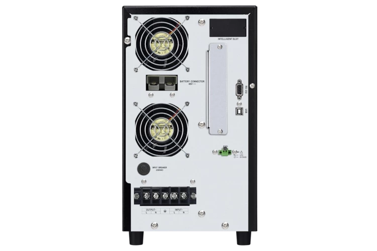 Источник бесперебойного питания длительной автономии. Используется с внешними АКБ. Мощность ВА/Вт 5000/5000; Выходной сигнал Чистый синус; Допустимый диапазон входного напряжения АС, В 110-300; Частота вход/выход - 46-54 Гц; Выходное напряжение 230 В; Напряжение шины DC, В 48, Время переключения на АКБ, мс 0; Минимальное количество батарея для подключения, шт.4; КПД сеть/батарея 0,93/0,9. Габаритные размеры Ш*Д*В, мм 190*450*336. Вес 15 кг. Автоматический стабилизатор напряжения и частоты;Защита от перегрузки заряда, перезаряда АКБ; Регулируемое зарядное устройство; Возможность удаленного мониторинга; Режим ECO; масштабирование мощности.