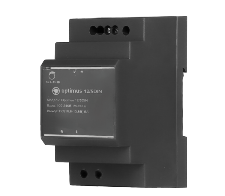 10,8-13,8 В, 5А. Входное напряжение переменное от 100 до 240 В, частота 50/60 Гц, регулируемое постоянное выходное напряжение 10,8-13,8 В, номинальный выходной ток не более 5 А, время наработки на отказ 100 000 часов, защита от короткого замыкания, перегрузки по току и перенапряжения, 2 выхода, для установки на DIN-рейку, 52,5?90?58,4 мм, вес 200 г.