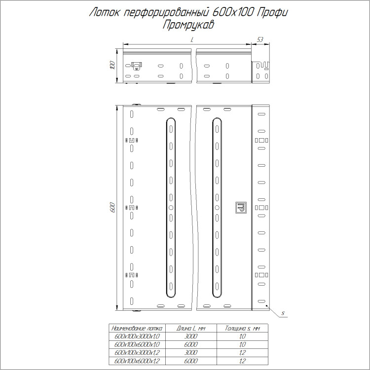 PR16.13361 Лоток перфорированный Профи INOX (AISI 304) 600х100x6000 (1,0 мм) (12 м/уп) Промрукав