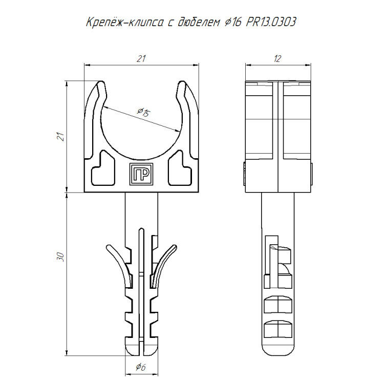 Крепеж-клипса с дюбелем для труб ?16 Промрукав