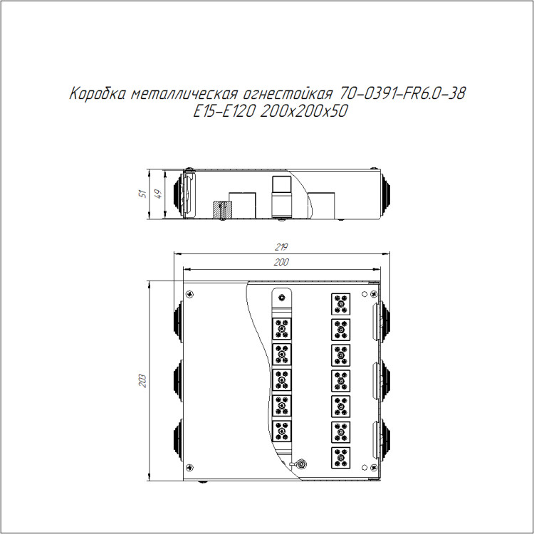 70-0391-FR6.0-38 Коробка металлическая огнестойкая 70-0391-FR6.0-38 Е15-Е120 200х200х50 Промрукав