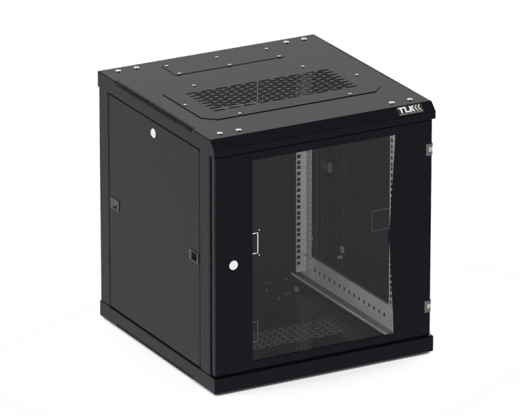 Настенный разборный шкаф TLK 19", 18U, стеклянная дверь, Ш600хВ904хГ450мм, 2 пары монтажных направляющих, черный