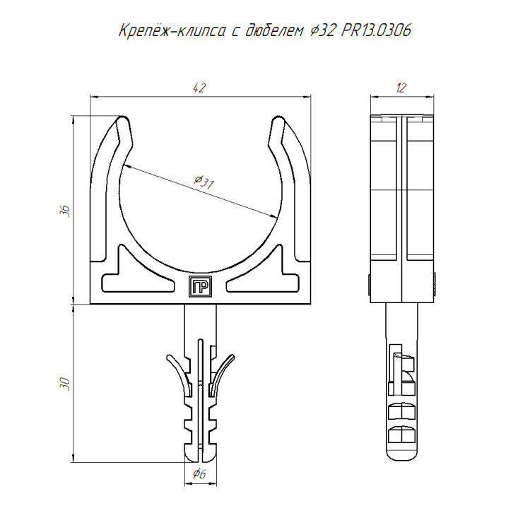 | Название | Крепеж-клипса с дюбелем черная d32 |