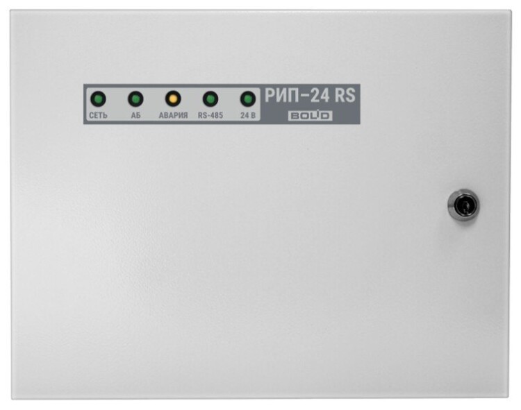 Резервированный источник питания, 24 В, 2 А (10 мин-2,5 А), передача данных и управление по интерфейсу RS-485, световая и звуковая индикация режимов, возможность установки аккумуляторов 2х7 Ач, защита от переразряда. Металлический корпус. Соответствие "Техрегламенту пожарной безопасности"