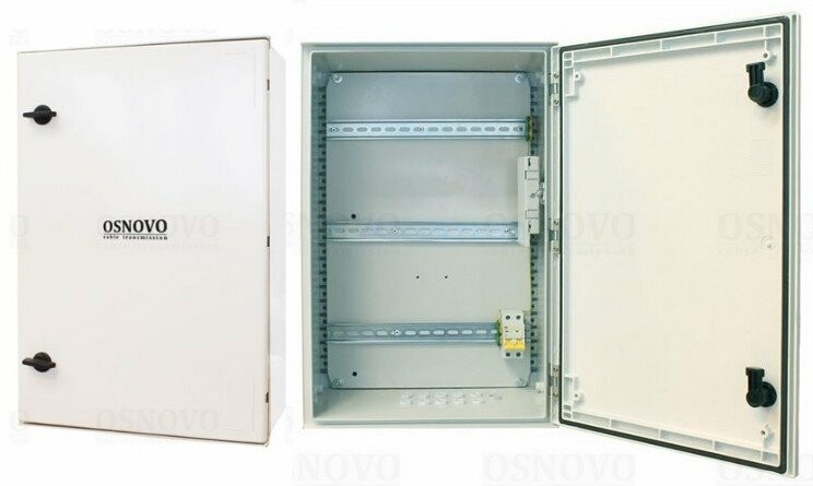 OSP-461 Уличная станция в пластиковом шкафу IP66 с оптическим кроссом. Радиопрозрачная конструкция. Доступное место под установку оборудования на встроенные DIN-рейки: верхняя - 340мм, средняя - 320мм, нижняя - 290мм. Защитный козырёк. Может поставляться со встроенным оборудованием по заказу. Размеры (ШхВхГ): 400x600x230мм. Рабочая температура: -50…+50°С.