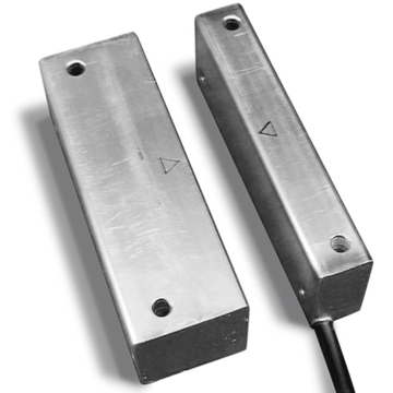 Магнитоконтактный для металлических поверхностей; контакты размыкаются при тревоге, 55 мм (контакты замкнуты), 85 мм (контакты разомкнуты); U-коммут.72 В, I-коммут.500 мА, P-коммут.10 Вт; IP68, t-раб.-50…+50°С, 90х40х20 мм (геркон), 90х40х40 (магнит). Кабель ПВС 2х0.75 1000 мм. Корпус из нержавеющей стали.