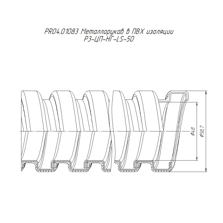 PR04.01083 Металлорукав в ПВХ изоляции Р3-ЦП-НГ-LS-50 (15м/уп) Промрукав